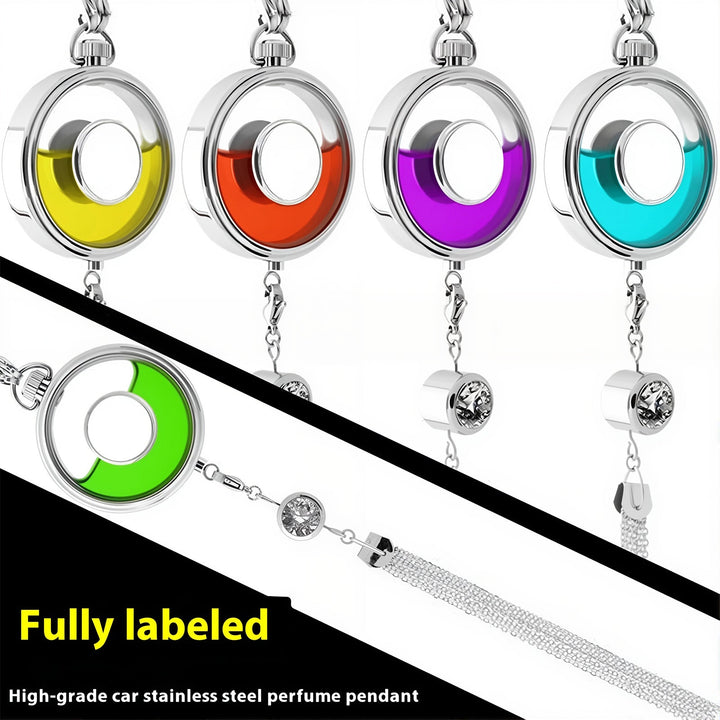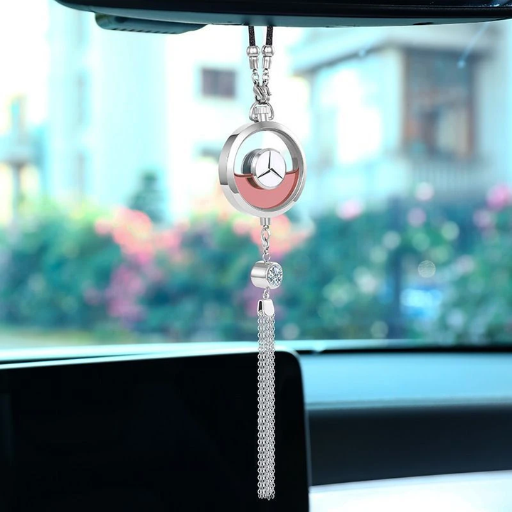 Inspired by a steering wheel, this compact pendant proudly displays your car's emblem while emitting a continuous, refined fragrance. Perfect as a stylish rear-view mirror accent or a unique keychain charm.