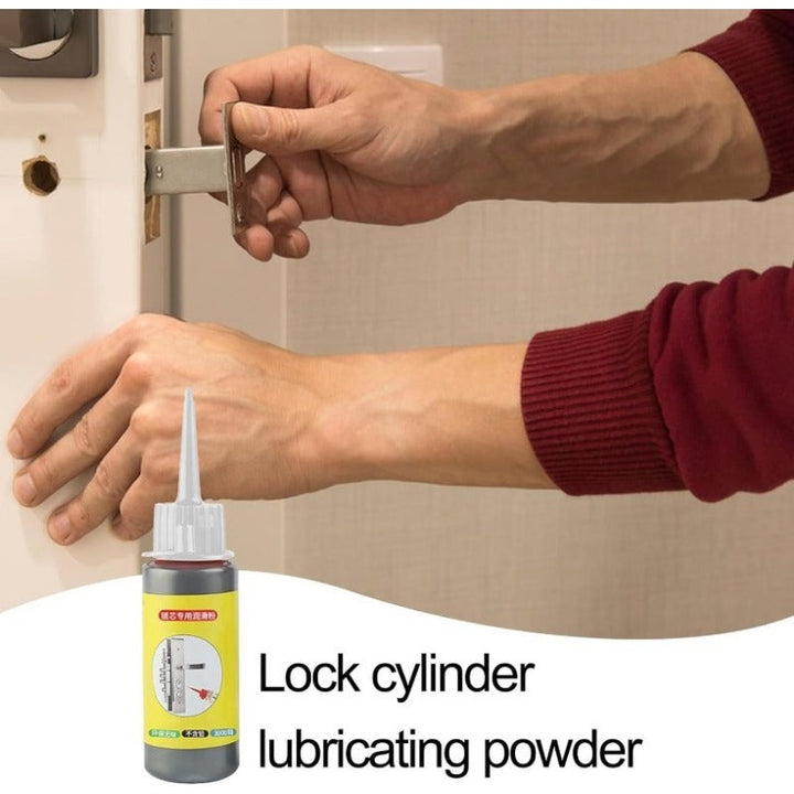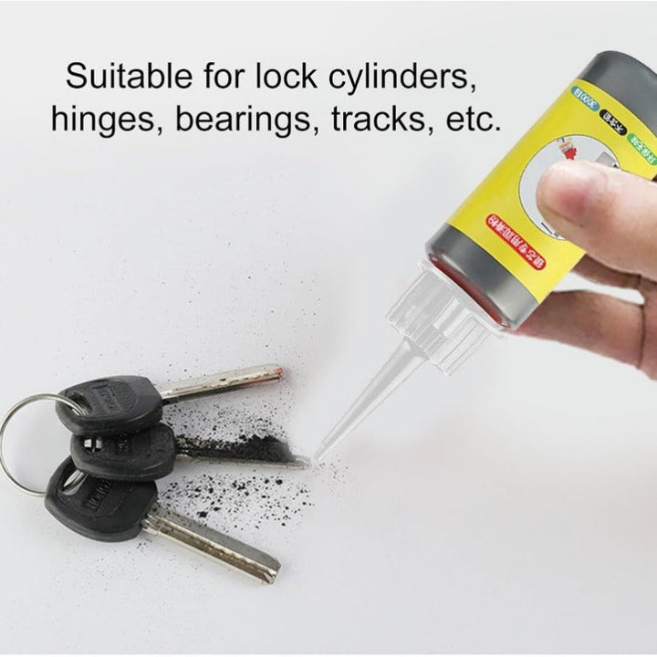 Squeeze gently into the keyhole; the powder disperses across all moving parts, cutting friction in seconds.