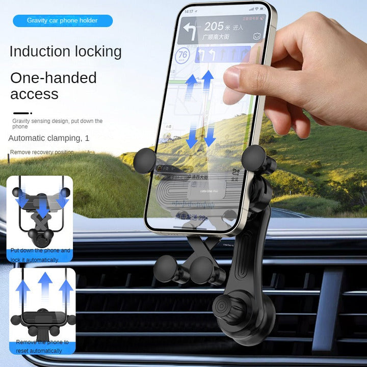Experience the automatic clamping feature that securely holds your phone in place. The gravity-sensing design ensures your phone is locked automatically once placed in the holder.