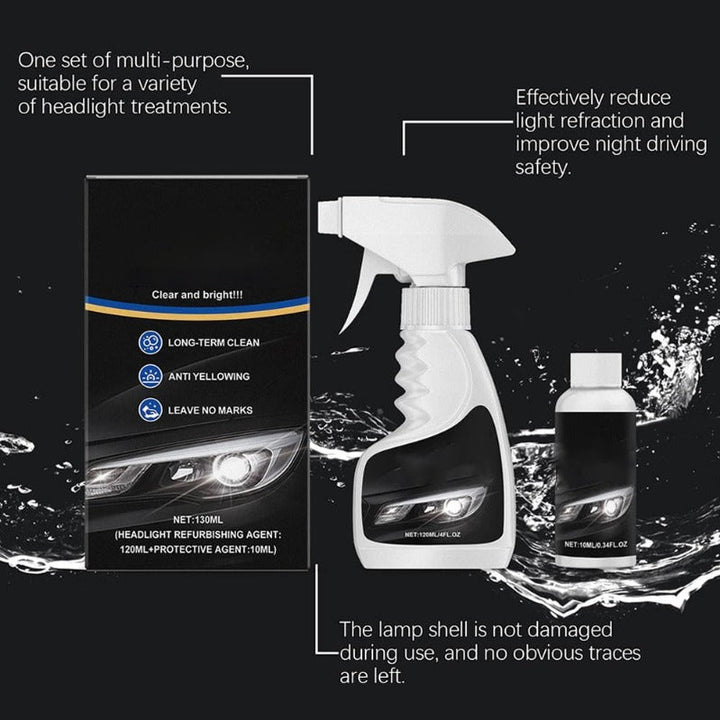 No sanding required—just spray and wipe! The specially formulated cleaner dissolves oxidation and grime safely while preserving the lens surface.