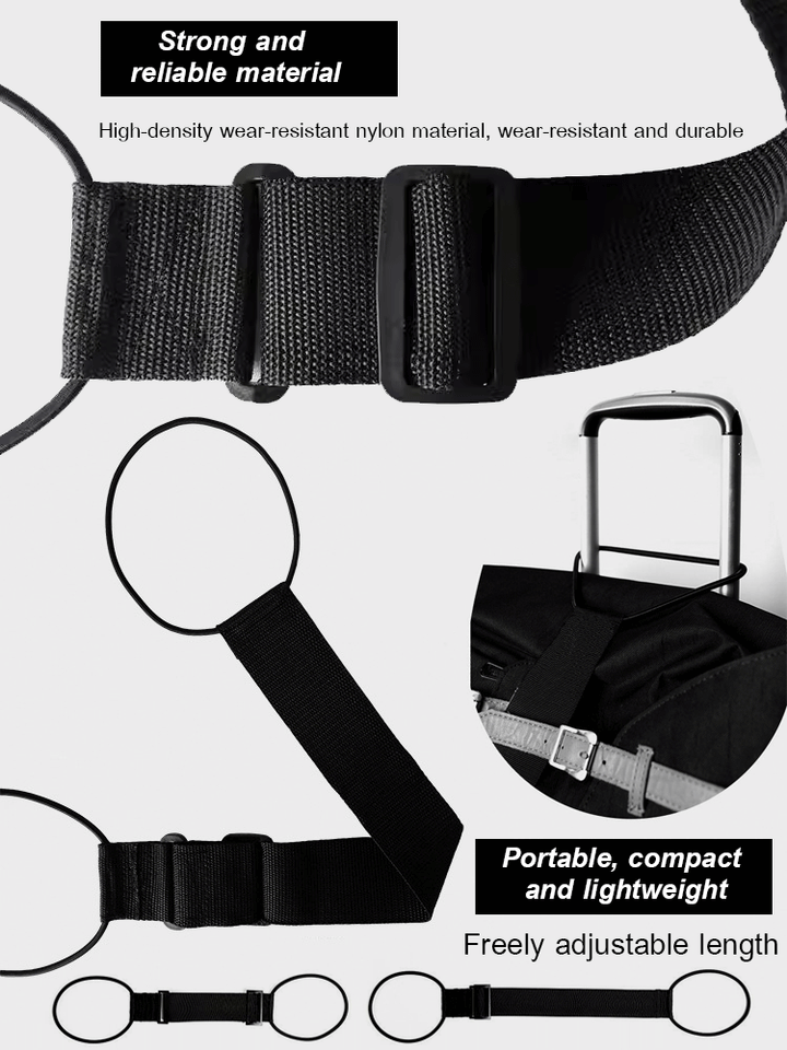 Uses: Easily secure your luggage to a travel bag or carry bag. Fits most travel carry with a sliding handle Useful when carrying caster bags during business trips, domestic travel, overseas travel, train, airplanes, and travel