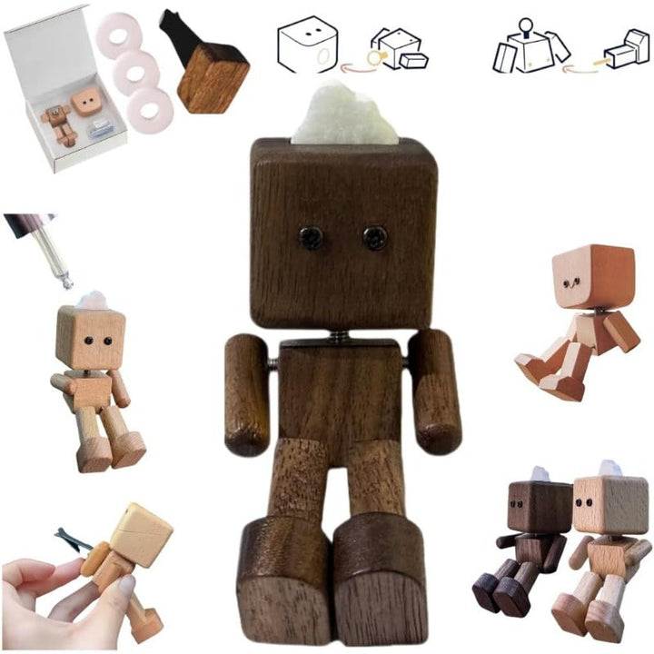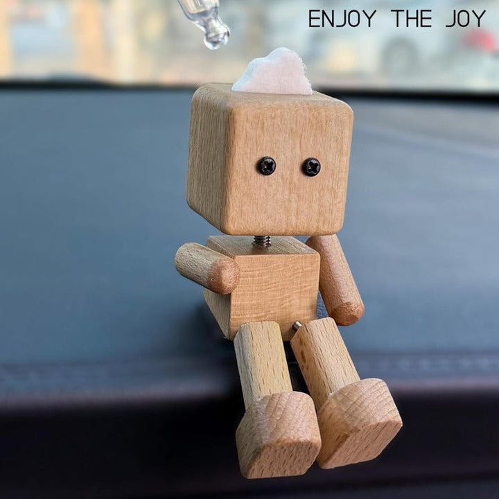 Shaking Wooden Robot Car Air Freshener – Aromatherapy Dashboard Decoration